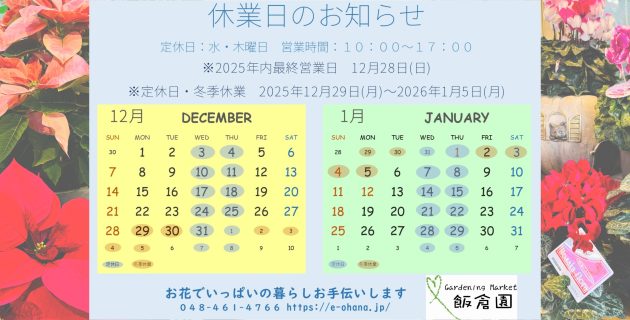 2025年12月〜2026年1月 休業日のご案内🌸