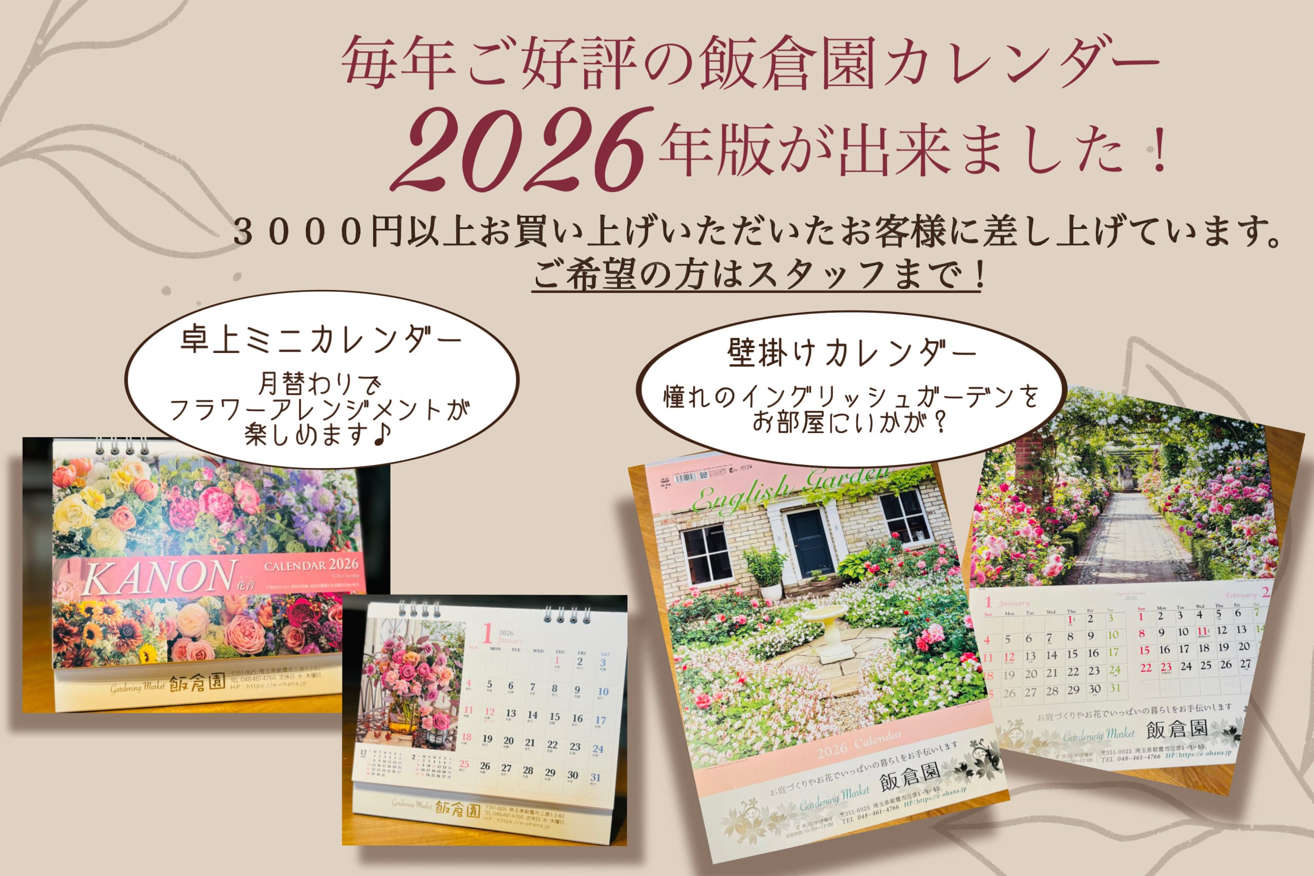 毎年ご好評いただいている飯倉園カレンダーができました💓