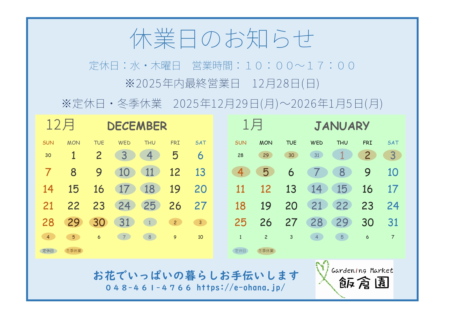 2025年12月29日月曜日〜2026年1月5日月曜日